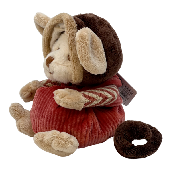 Dieser kleine weiße Teddy hat sich etwas ganz Besonderes ausgedacht: Er schlüpft kurzerhand ins Affchenkostüm! Mit seiner Kapuze samt süßen Öhrchen, den rotfarbenen Latzhosen und dem gestreiften Shirt ist er nicht nur kuschelweich, sondern auch ein echter Hingucker. Perfekt zum Spielen, Sammeln oder einfach nur zum Liebhaben – ein treuer Begleiter mit jeder Menge Spaßfaktor. Ist bei 30° C waschbar, hat Stoffaugen und ist sehr widerstandsfähig. Dieser Produkt erfüllt europäische Sicherheitsstandards EN71/1-3.
